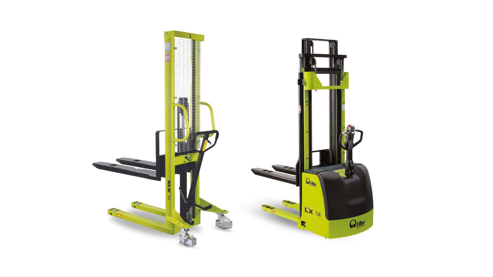 Lifter by Pramac’s standard and tailor-made stackers available in manual, semi-electric and electric configurations, designed to work in narrow spaces and support light to heavy duties