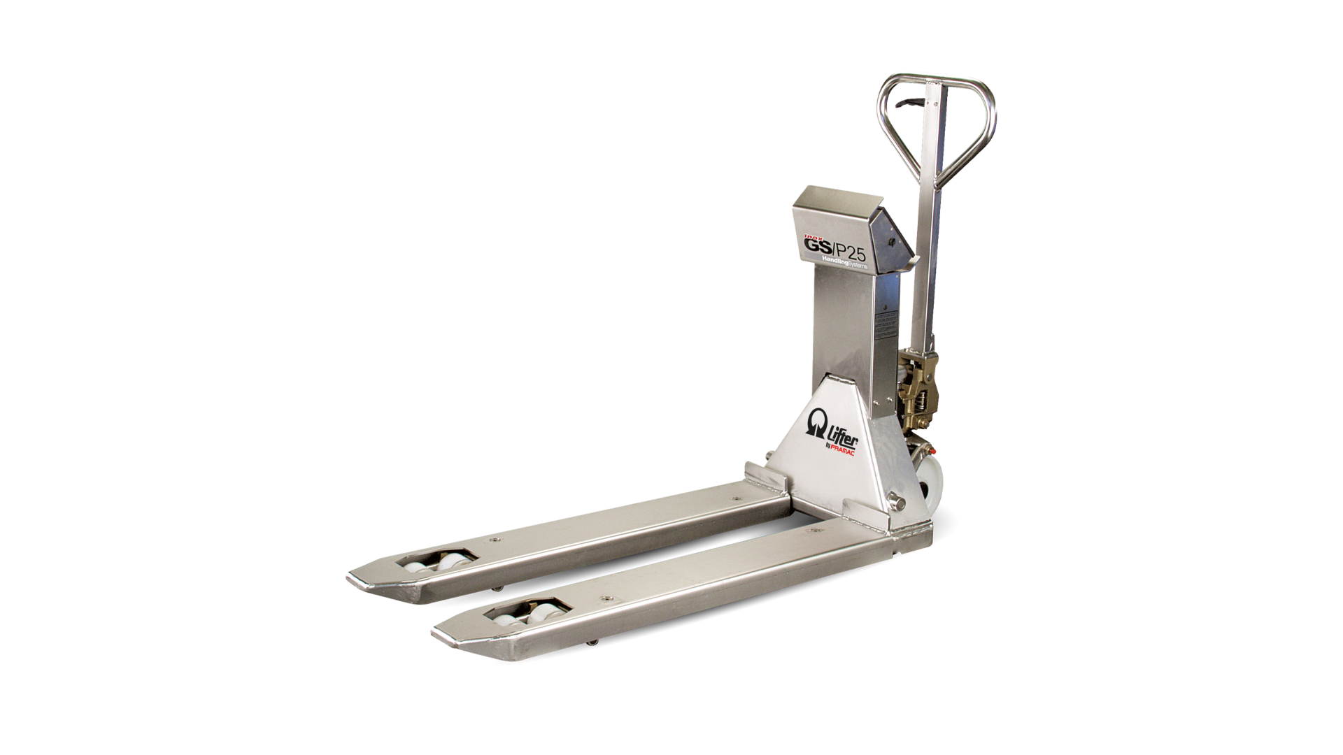 Weighing system consisting of 4 load cells positioned under the forks and a compact multifunction weight indicator. Suitable for working in environments where cleanliness and hygiene are the most requested values