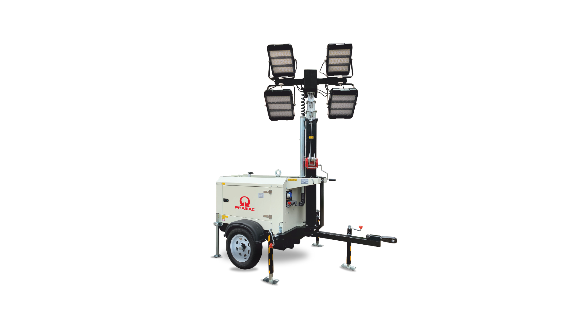 Pramac's LSW series feature manual/hydraulic lifting and site/road trailer, covering over 4000 square meters, representing the optimal solution for outdoor needs